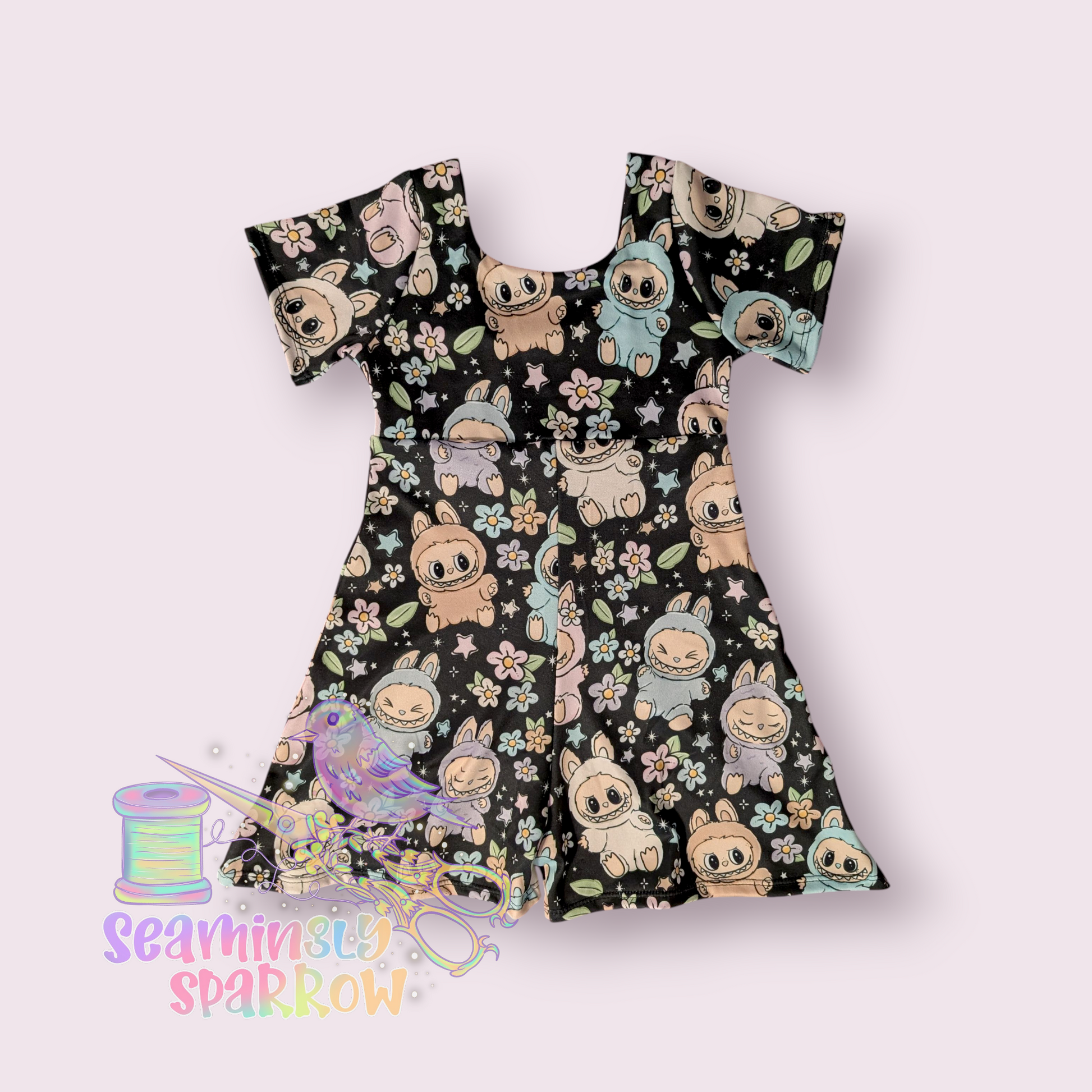 Short Sleeved Petal Shorts Romper in the Floral Bubu print. Made with soft and cozy DBP.